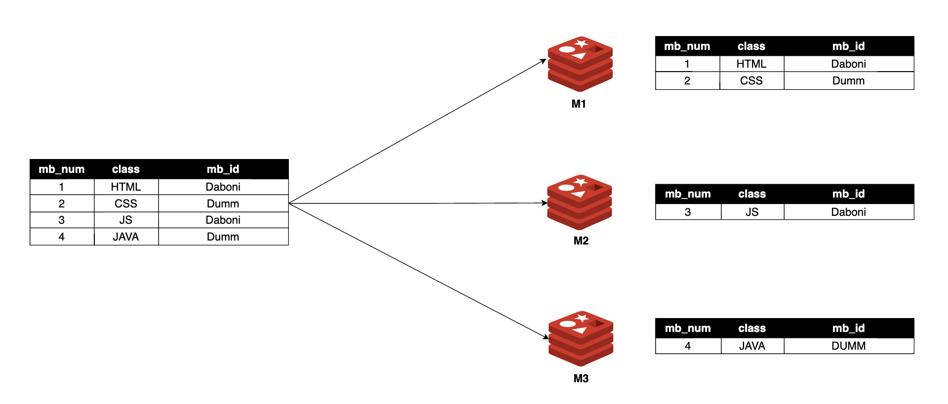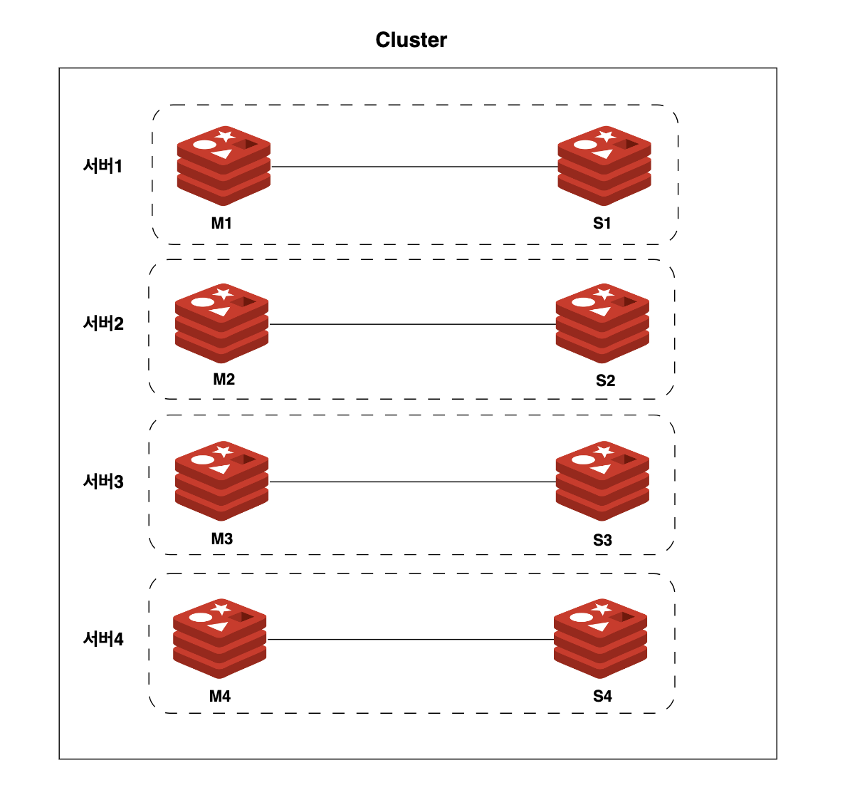 - Redis Cluster는 Master를 여러 개 두어 분상 저장이 가능(Sharding), Scale Out이 가능하다.