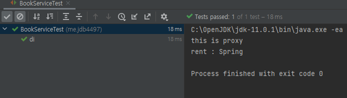 - BookServiceTest가 BookService 인터페이스를 이용