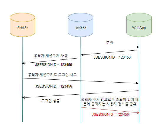 - 사용자는 공격자에게 받은 세션쿠키로 로그인을 시도