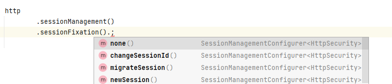 - migrateSession() : changeSessionId와 마찬가지로 매번 세션 아이디를 바꿈. 서벌릿 버전 3.1 아래까지 default 값