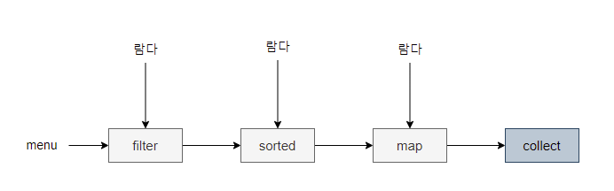 - filter, sorted, map, collect 같은 여러 빌딩 블록 연산을 연결해서 복잡한 데이터 처리 파이프라인을 만들 수 있다.