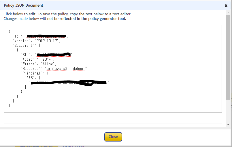 Generate Policy -> Json 복사