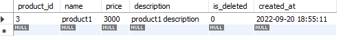 간단하게 Entity는 Product만 준비했습니다. 이번 예제에서 Default Value를 사용하는 칼럼은 삭제 여부를 체크하는 isDeleted와 생성 시간을 담는 createdAt 입니다.